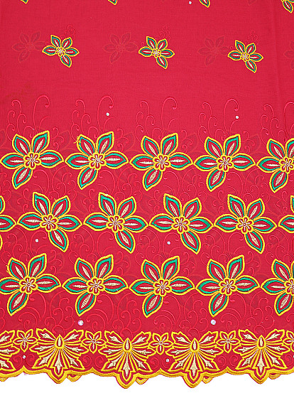 There are more than 400 sparkling stones per yard of this wonderful voile fabric. Sold in 5 yard strips, that’s more than 2000 per order! The embroidery is flawless, and being a voile lace, there’s a delicateness to this fabric that’s simply stunning. There are many different colour options to choose from, including cream & army green, royal & white, yellow, mint & orange, and white & aqua. The blues and creams are quite understated and mellow, whereas the orange and royal options are more dramatic and bold - this voile lace is very versatile.