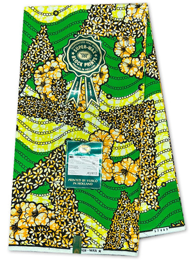 Vlisco Super Wax - The finest quality of Wax Print is the famous ‘Super-Wax’. The use of bright vibrant solid colours characterises many Super-Wax fabrics. And like any Vlisco fabric, Super-Wax is of the utmost quality, elegance and class. Initially introduced in and around Congo (Kinshasa) the Super-Wax products have now become popular in the countries such as Ivory Coast, Benin and Northern Nigeria.